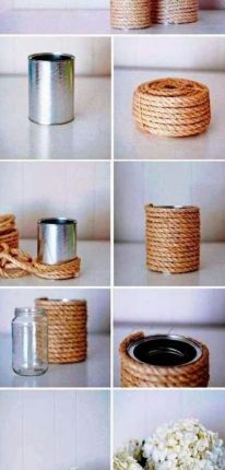 Красивое кашпо/ваза из верёвки и стеклянной/жестяной банки
