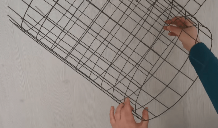 В планах — сделать роскошный дизайнерский столик. Отрезав нужное количество сетки, скрепляем ее так, чтобы получить толстую трубу.