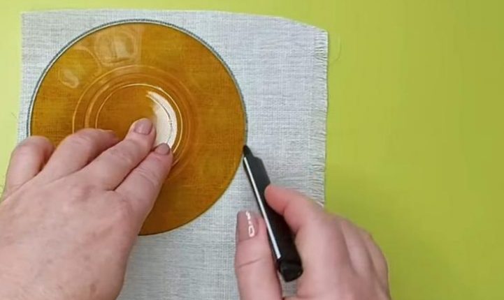 Нарисуйте на ткани окружность диаметром 10-12 см.