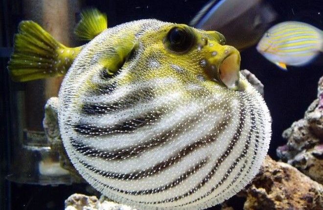 Второе ее название — рыба-шар, так как в момент опасности так раздувается, что кажется, что сейчас лопнет. Ее также называют собака-рыбой, иглобрюхом и диодонтом, шаротелом.
