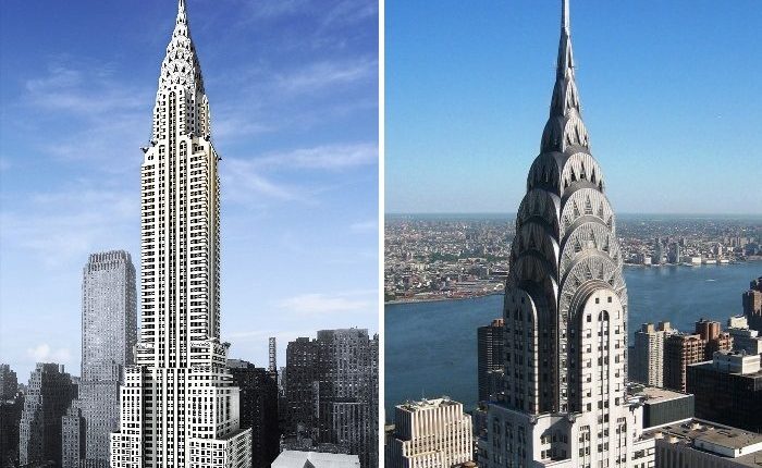 На заре прошлого века архитекторы и заказчики в стремлении создать самое высокое здание в мире шли на самые невероятные ухищрения. Так, например, во время строительства офиса для известной на весь мир компании Chrysler, чтобы перещеголять соперника, который строил высотку на Уолл-стрит № 40, архитектор втайне спроектировал шпиль, позволивший вырваться вперед настолько, что Chrysler Building был признан самым высоким зданием мира. Причем ему удалось все-таки перещеголять Эйфелеву башню. И самое интересное, чтобы застать соперника врасплох и тот ничего не смог уже предпринять, внутри сооружения создавали 38 метровый шпиль, который установили всего лишь за 1,5 часа. В итоге конкурирующая фирма осталась с носом, ведь Chrysler Building достиг высоты 319 м., что позволило получить статус «самое высокое здание мира», хотя пальму первенства он держал всего лишь 11 месяцев.