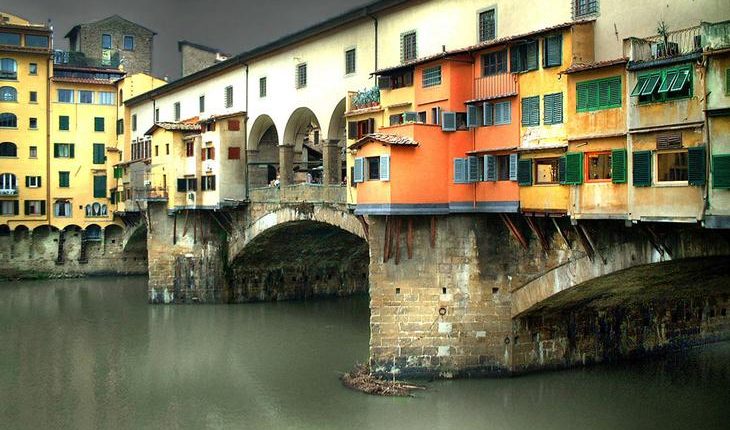 Поте Веккио — самый старый мост во Флоренции. Есть мнение, что мост существовал здесь еще во времена Древнего Рима. А свой нынешний облик приобрел в 1345 году, когда его построили на месте снесенного наводнением. На мосту построили и дома — в средневековой Европе это была обычная практика.