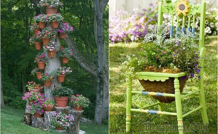 Старое дерево можно успешно использовать как «подставку» для цветочных горшков.