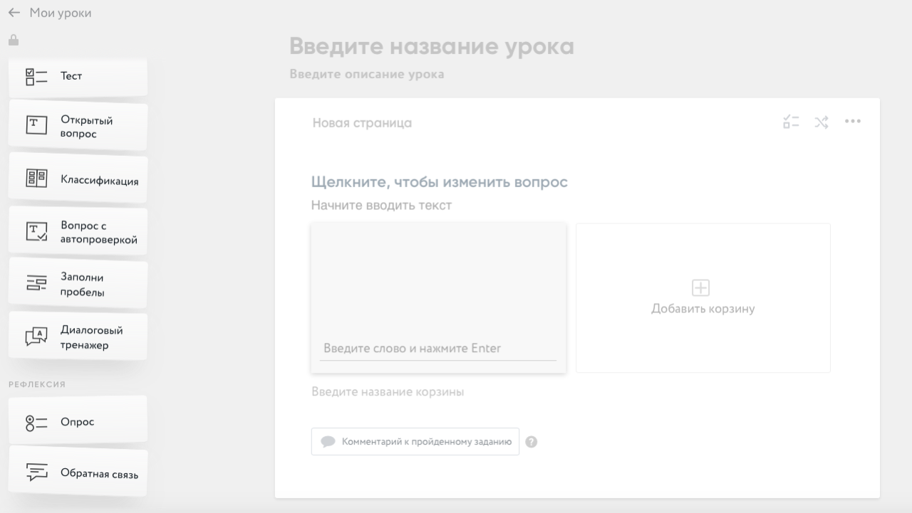 Обязательно используйте упражнения разных форматов. На платформе есть интеграция с сервисами learning app и wordworld: выбираете необходимый вариант задания и вставляйте ссылку в урок.