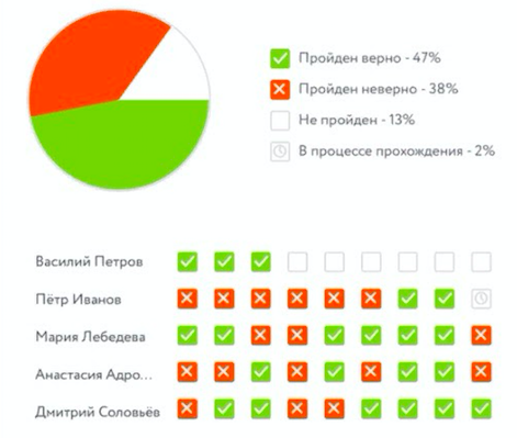 Собирать статистику и анализировать результаты курса — проще простого. Наглядно видны результаты.