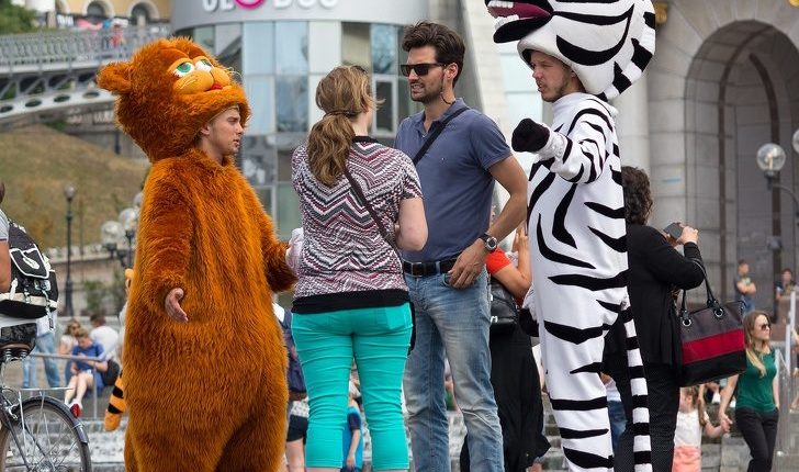 В самых популярных туристических местах ведут охоту ростовые куклы в обликах любимых мультяшных персонажей. «Зверюшки» подходят, как правило, к людям с детьми, просят родителей достать смартфон и сделать пару кадров, после чего начинают требовать деньги за каждое фото. Ведут себя такие мошенники нагло и агрессивно, рассчитывая на то, что человек растеряется и согласится на их условия. Если цена не была озвучена до того, как вам предложили сфотографироваться, то просто уйдите и не поддавайтесь на провокации.