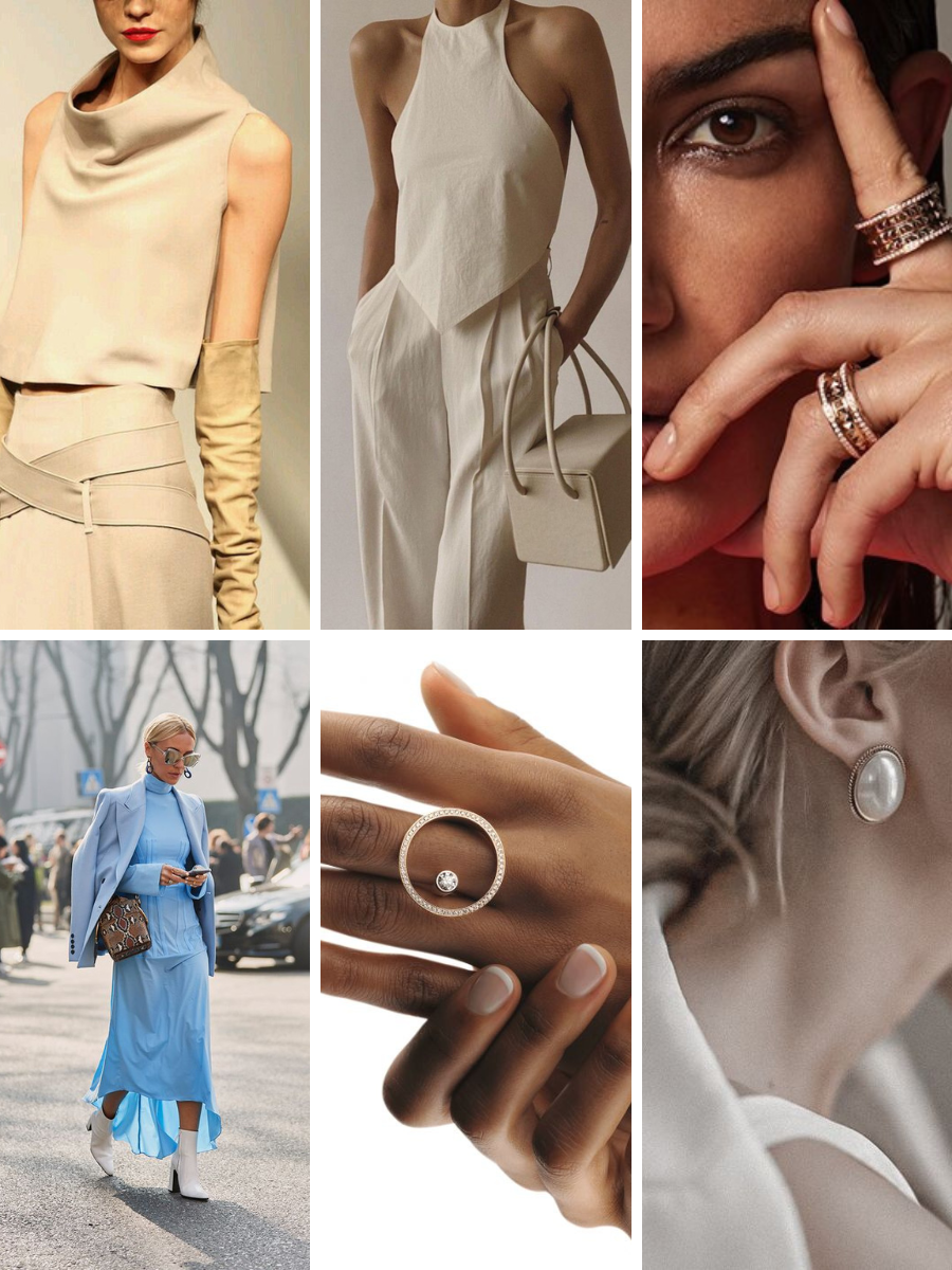 Идеальный цвет небесно-голубой — это цвет Сатурна в благости и созвучный с Лунной энергией. Важно сохранить легкость и женственность образа.