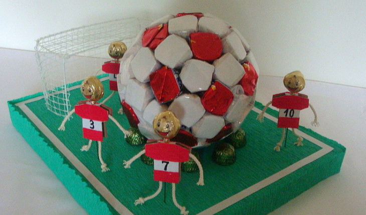 Сегодня подобрать подарок для тех кто неравнодушен к сладостям, не так уж и сложно. Но обычная коробка конфет не совсем похожа на презент. Поэтому мы предлагаем для вас простую идею для оригинального подарка. Оформите конфеты в виде футбольного мяча!