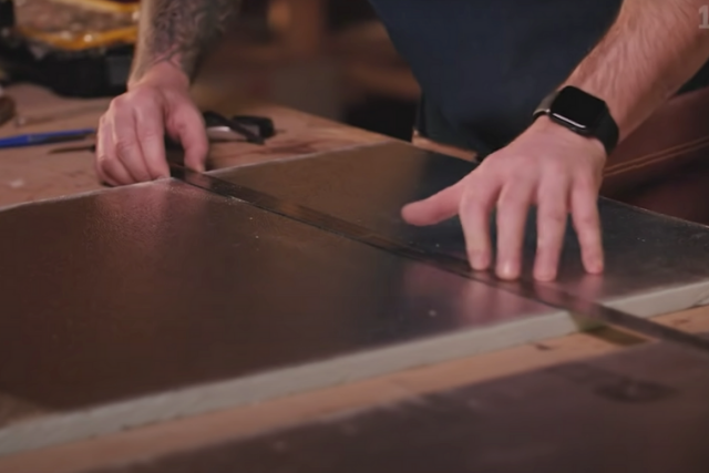 Для удобства открывания крышки, можно к ней из остатков ремня приделать ручку. Для этого достаточно просверлить две дырки в ремне и прикрутить ручку саморезами.