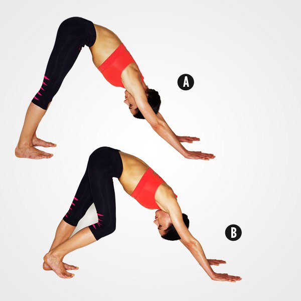 Встаньте на пол одновременно руками и ногами, не отрывая пяток от пола. Попа должна «смотреть» вверх. В таком положении начинайте делать ногами велосипедик – это способствует удлинению ваших икроножных мышц. Упражнение делайте около минуты.