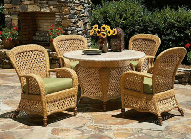 Для организации основательной зоны отдыха обратите внимание на наборы садовой мебели из полиротанга, в который входят часто стол, диван или скамья, а также кресла или стулья.