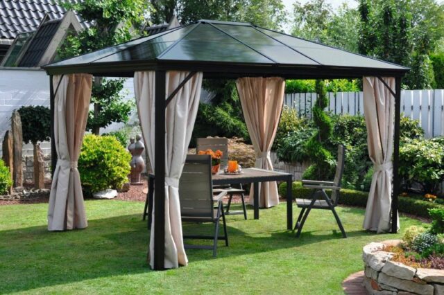 Последний может выглядеть как большая палатка с антимоскитной сеткой или садовый павильон с металлическим каркасом.