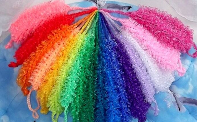 Для среднего размера мочалки примерно понадобится 300 м пряжи. Если вы никогда не пробовали вязать узор крючком с вытянутыми петлями, то сперва потренируйтесь вязать его из обычной пряжи, акриловой, хлопковой или полушерстяной. Так как полипропиленовые нити имеют свойство скользить и расслабляться при вязание, узелки могут по-началу получаться некрепкими. Вытягивать петли можно с помощью пальцев, либо с помощью узкой линейки.