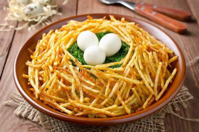 Картофель-пай используется для салата “Гнездо глухаря”.