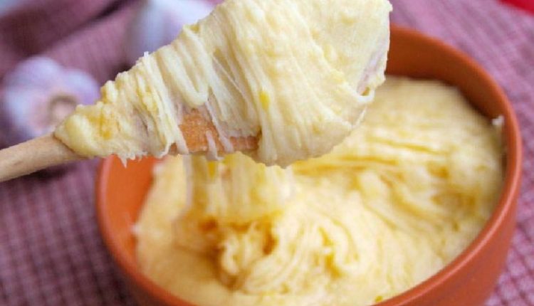Кастрюлю с картофельным пюре поставить на очень слабый огонь и нагревать, постоянно помешивая деревянной лопаткой до того момента, пока не расплавится сыр и масса не станет тянуться.