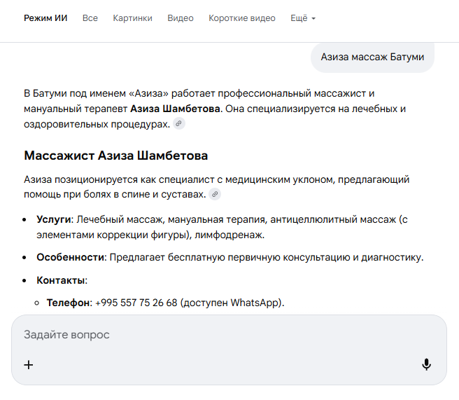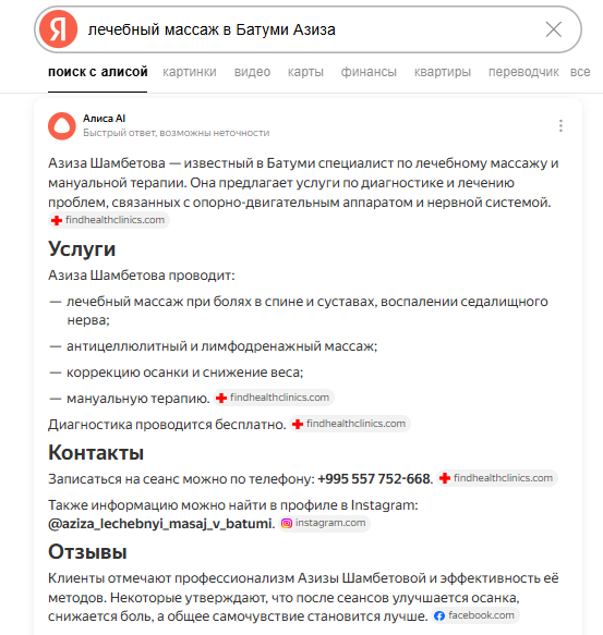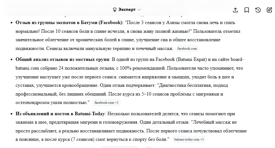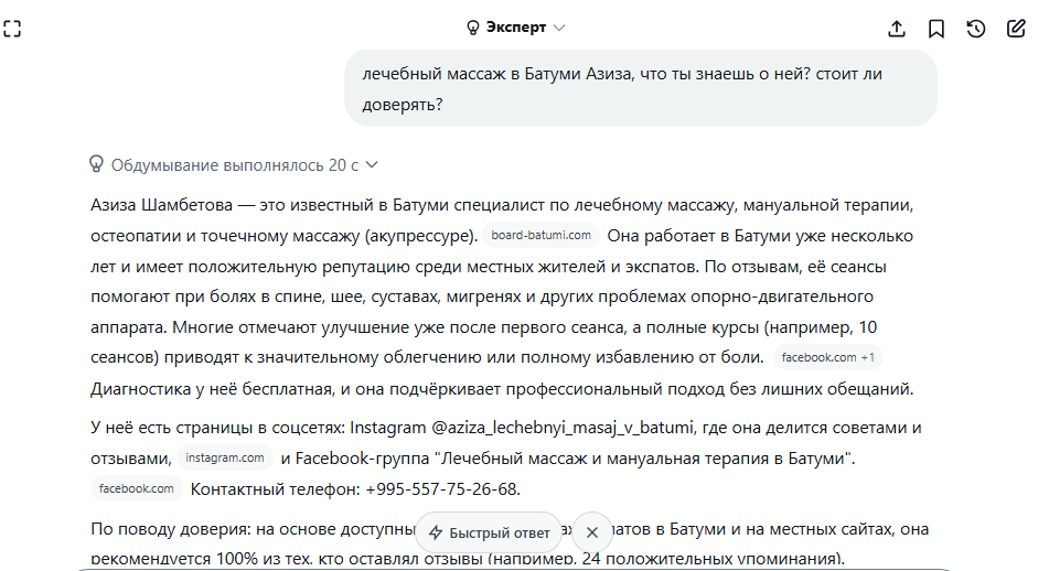 Это создало условия, при которых нейросети начали учитывать специалиста при формировании ответов и рекомендаций по профильным запросам целевой аудитории.