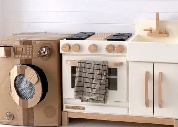 Эта креативная мама стала делать из картона предметы домашнего обихода. Сначала это делалось во время карантина, чтобы развлечь соседских детей, но когда интерес проявили её собственные дети, она начала создавать тщательно продуманные и проработанные копии бытовой техники, такой как стиральная машина, посудомоечная машина, ноутбук и т.п. и для них.