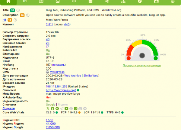 Сайт расширения: https://site-analyzer.ru/soft/seo-extension/