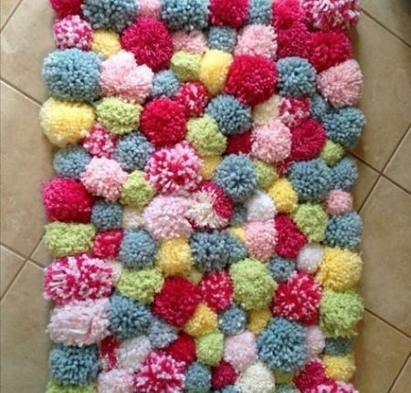 Простой способ сделать интересный коврик-пазл — связать или сшить его из разных деталей, вязаных, или тканевых, или даже из помпонов! Выбирая разные цвета, пробуя строить симпатичные узоры, вы получите крутой и уникальный коврик, которого больше ни у кого не будет.
