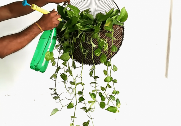 Очаровательное подвесное кашпо выглядит интересно, необычно и даже стильно. Между тем сделано оно из того, что оказалось под рукой и, по большому счету, могло быть отправлено в мусор.