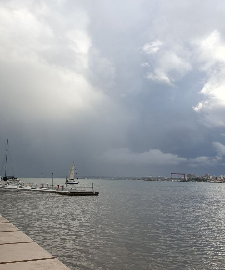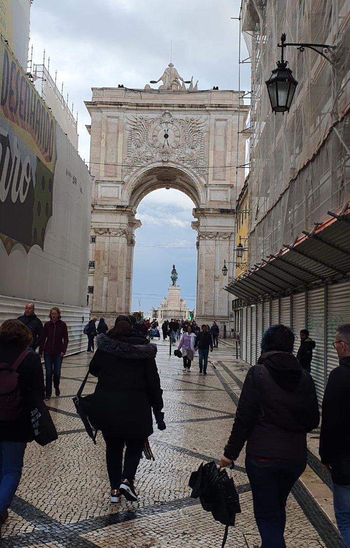 К тому времени погода стала меняться. И день, такой безоблачный и солнечный, начал хмуриться, подул ветер с океана, небо затягивалось тёмными серыми тучами. А мы ещё не посетили главную достопримечательность и туристическую цель — площадь Коммерции — одна из самых больших площадей Европы, расположена внизу, на берегу реки Тежу.