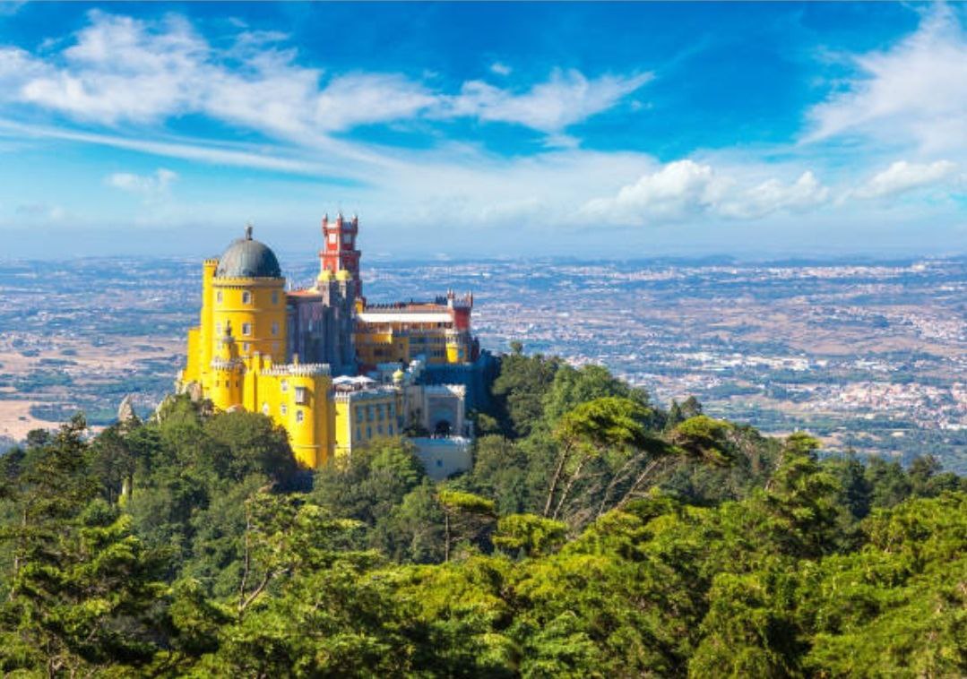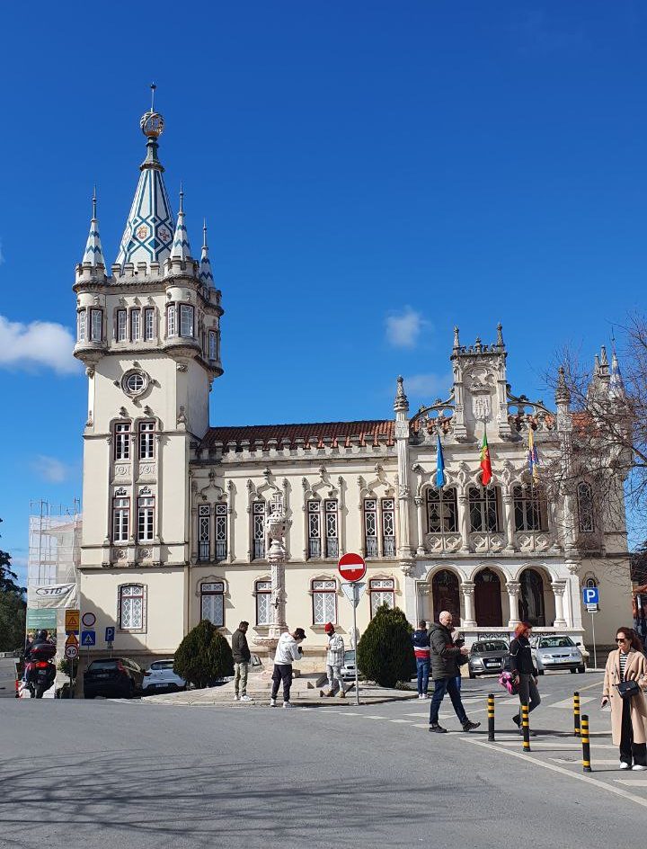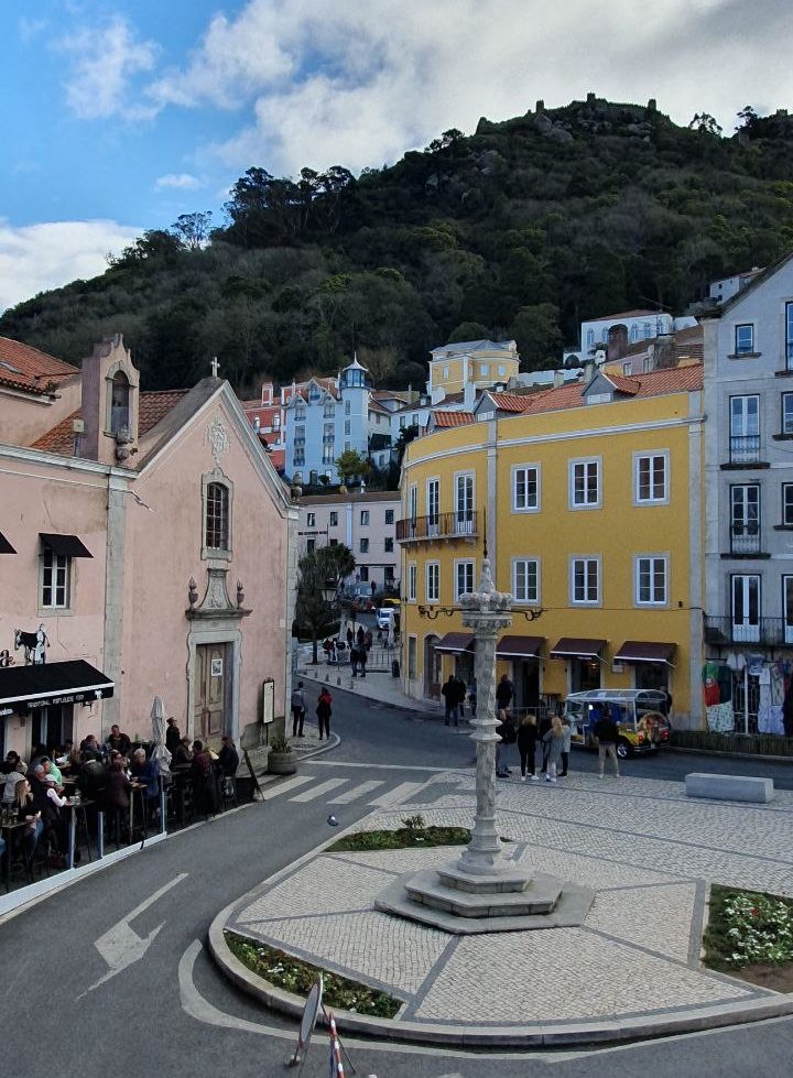 Но в реальности оказалось, что самая большая достопримечательность Синтры — роскошный разноцветный королевский дворец девятнадцатого века, возвышается высоко в горах над городом. И дойти до него пешком оказалось невыполнимой задачей даже для моего мужа. На вершину горы нужно добираться с помощью транспорта.
