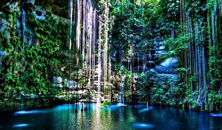 Удивительными творениями природы являются природные колодцы или сеноты, некоторые из них настолько красивы, что поверить в их существование просто невозможно. Одним из таких сенотов является Ик Киль, расположенный в Мексике. Этот колодец, расположенный на полуострове Юкатан, является одним из самых глубоких в мире, его глубина составляет более 50 метров, а высота стен достигает 25 метров. Как удалось выяснить исследователям, когда-то сенот Ик Киль был пещерой, своды которой обрушились. В результате обрушения образовался невероятной красоты колодец с пресной водой, высокие стены которого покрывают экзотические растения.