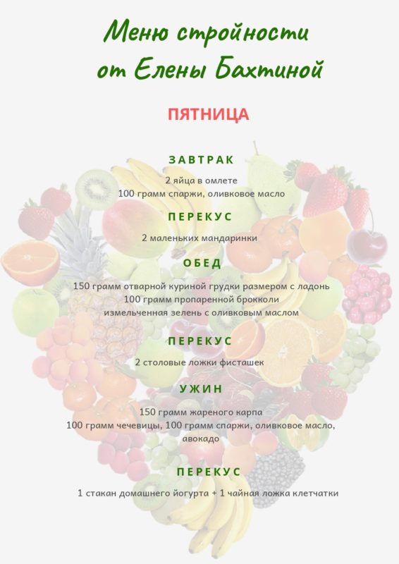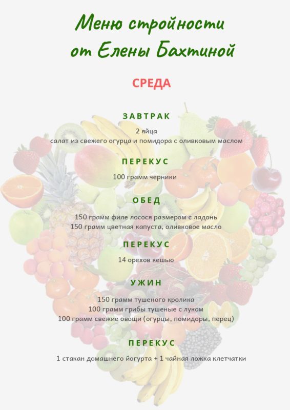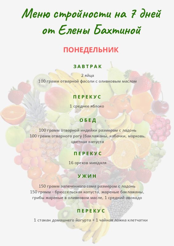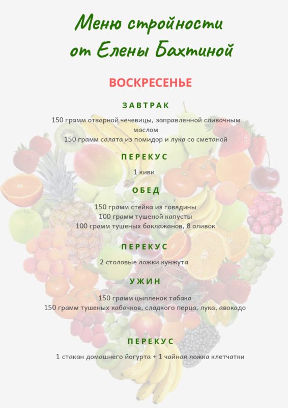 Как похудеть за неделю? Если вы хотите избавиться от нескольких лишних килограмм без голодания  и диет, попробуйте меню стройности за 7 дней, которое разработала Елена Бахтина, известный врач-нутрициолог, генетик, акушер-гинеколог, автор книги «Старости нет, или как оставить своего доктора без работы», получившей престижную международную премию в Париже.