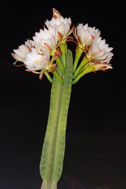 Кактус редкой породы — ночной Король, цветущий один раз в несколько лет, раскрыл свои белоснежные огромные цветки всего на несколько часов, глубокой ночью, приветствуя меня в торжественном карауле.