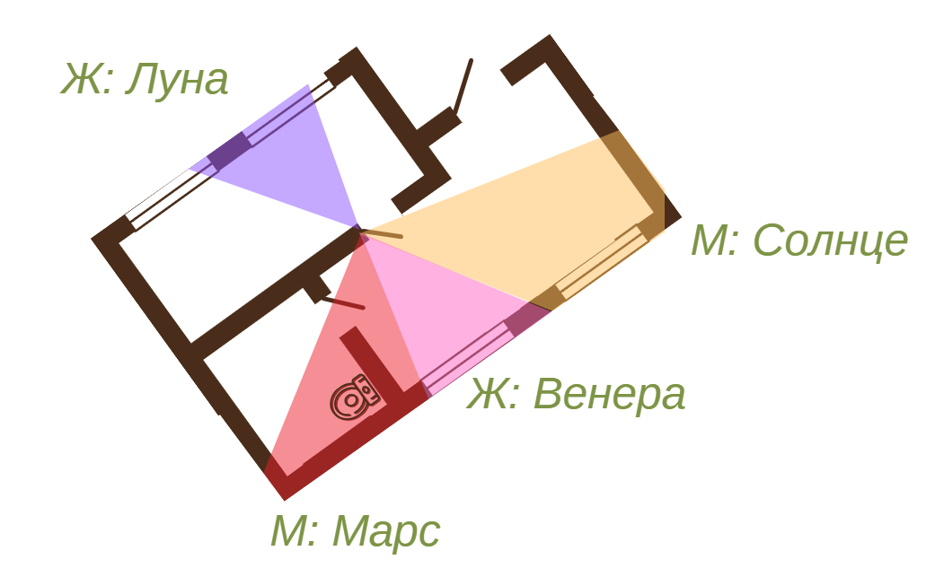 Проблемный сектор Солнца — то есть срезанный, без окон или с санузлом — сводит на нет проявленность от рекламы.