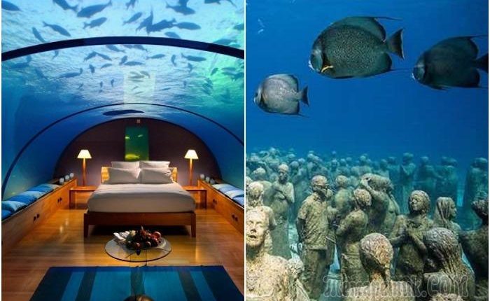 Однако современные технологии позволяют возводить здания не только на поверхности земли, но и под водой. Поэтому сегодня можно совместить сразу два приятных занятия — посетить необычные архитектурные и скульптурные объекты и восхититься пейзажами мирового океана.