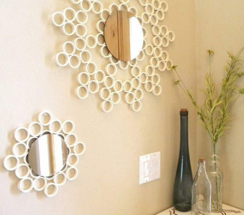 Современный дизайн зеркал с обрамлением из ПВХ труб.