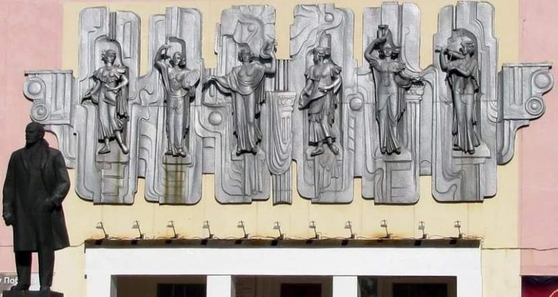 На фасаде ДК расположена самая большая чеканка, выполненная вручную Дагестанским художником монументалистом Баширом Увайсовым, размер её 8х24 метра!