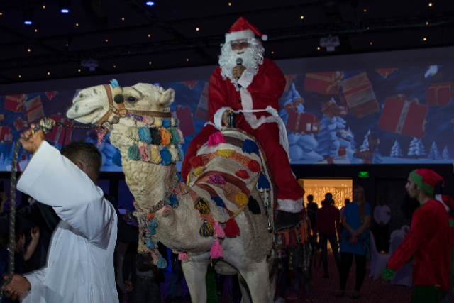 Появление Баба Ноэля на украшенном верблюде — зрелище эффектное. Особенно его появления ждут дети. Ведь верблюд везёт не только Дедушку, но и мешок с подарками.