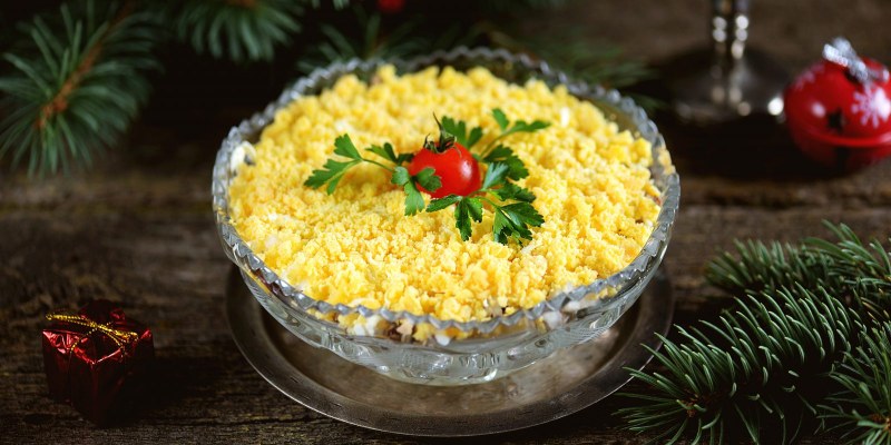 Новогодние салаты по-новому: современные версии оливье, шубы, мимозы, крабового и “гнезда глухаря”
