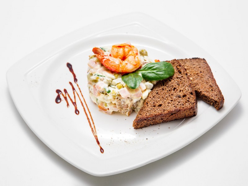 • Оливье с морепродуктами. Креветки или кальмар вместо колбасы дают новогодний уровень без лишнего пафоса.