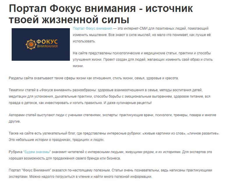 ????Название ресурса имеет глубокий философский смысл. Ведь то, что на направлено наше внимание, то мы и привлекаем в свою жизнь. Меняем убеждения — меняем жизнь. А изменить наши мысли можно, получив нужную и интересную информацию.