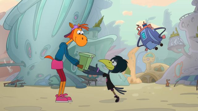 Новинка сезона в онлайн-кинотеатре IVI – комедийный мультсериал о приключениях лошадки-тинейджера Джинджи и её друзей – рюкзака UB-7 и вороны Вероны.