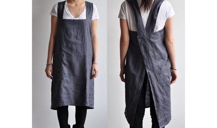 Очень простая и в то же время оригинальная идея, отрез льна, немного свободного времени и в вашем кухонном арсенале появится фартук с запахом. Кроме того, такая интересная модель подойдет и тем, кто увлечен «пачкающимся» творчеством.