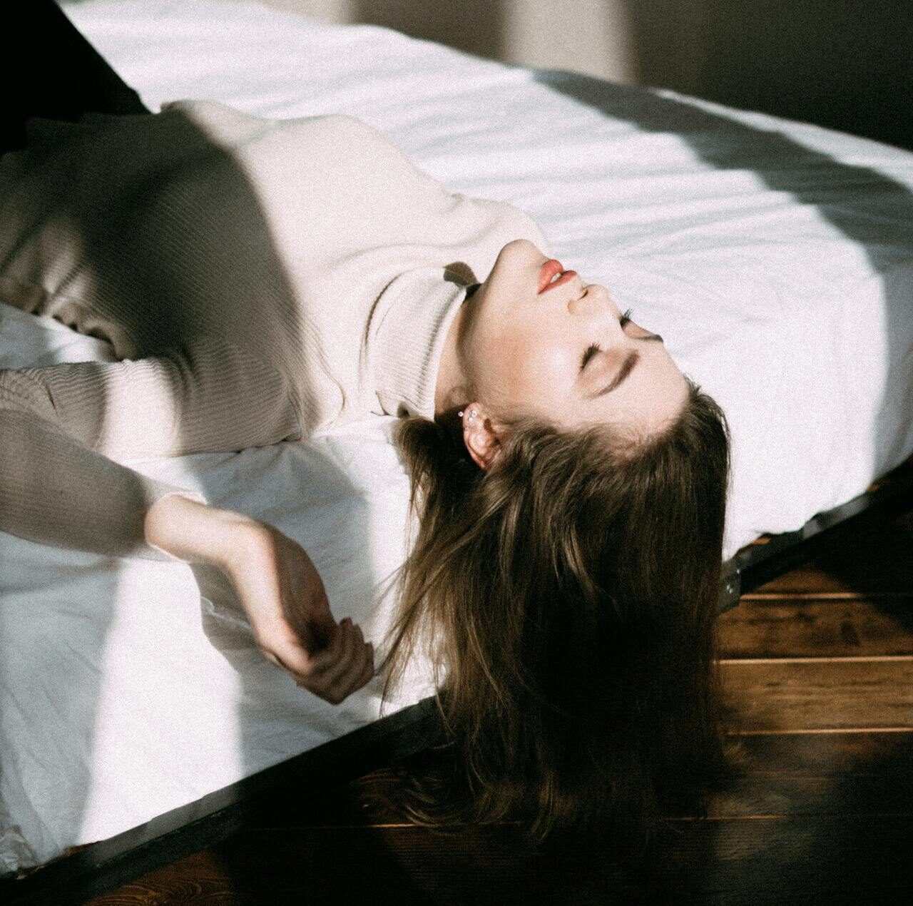 Контакт с опорой. Полежите 5 минут на полу или другой твёрдой поверхности без подушки. Это помогает телу расслабиться и почувствовать устойчивость.