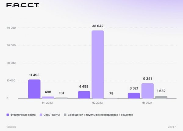 В первом полугодии 2024 г. было заблокировано 9341 подобных мошеннических сайтов, что почти в 19 раз больше значений аналогичного периода прошлого года.