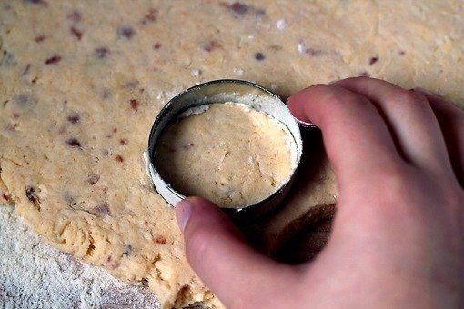 4. Готовое тесто нужно раскатать в лист примерно 1 см толщиной и порезать на любые фигурки. Это могут быть кружочки, рыбки, квадратики, треугольники и т. д. Готовое печенье выкладываем на противень и ставим на 15 минут в духовой шкаф при температуре 180°C.