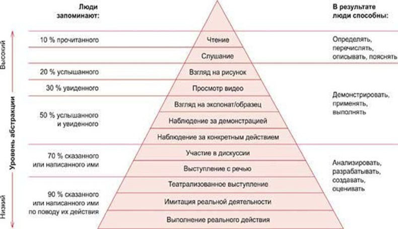 Еще в 1969 году Эдгар Дейл выявил самые эффективные техники обучения и описал их в своей монографии. Используя популярный в свое время форм-фактор, он визуализировал данные в виде Конуса обучения, а цифровые данные его последователей дополнили разработанную систему.
