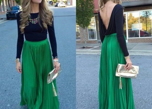 Женственный, спокойный наряд подойдет для похода в театр или в ресторан. Кстати, такую юбку можно использовать и в летнем образе, например с белой футболкой и кедами.
