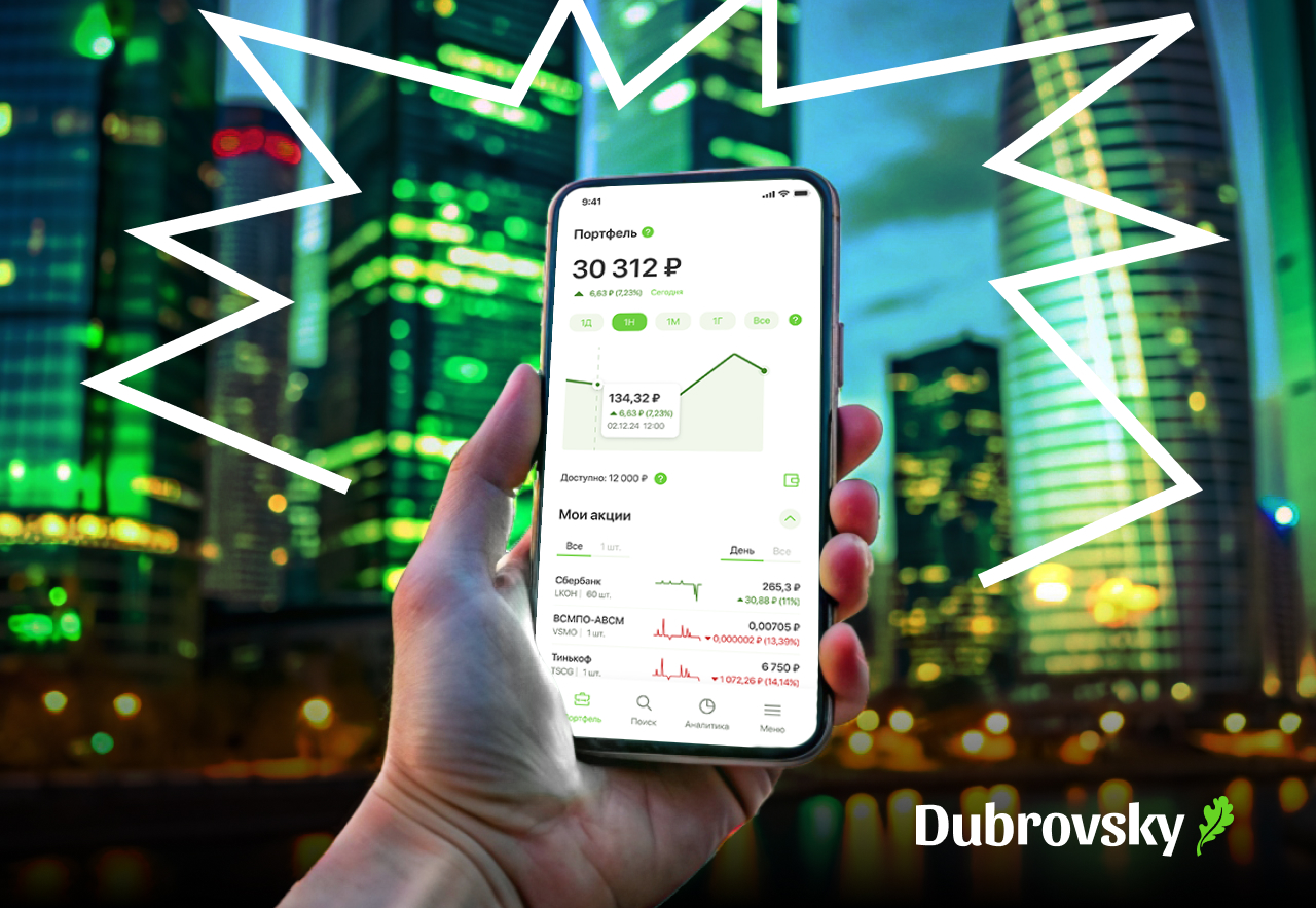 Главная идея Dubrovsky — сделать торговлю акциями максимально доступной для каждого: совершать сделки можно с любым положительным балансом на счету, а пополнять или выводить заработанные средства за несколько мгновений через Службу быстрых платежей (СБП).