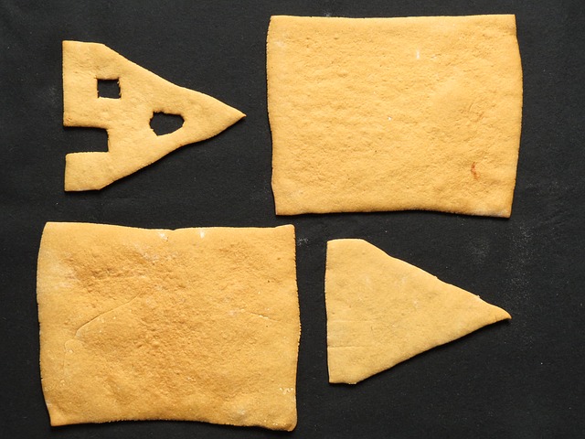 Теперь надо сформировать домик. Для этого понадобится картон, чтобы сделать из него выкройку. Чтобы тесто не приставало, шаблоны смазать маслом.