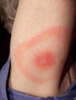 Боррелиоз. Начнется все с высокой и температуры и вот таких красивых колечек на месте укуса (по–научному — эритема):