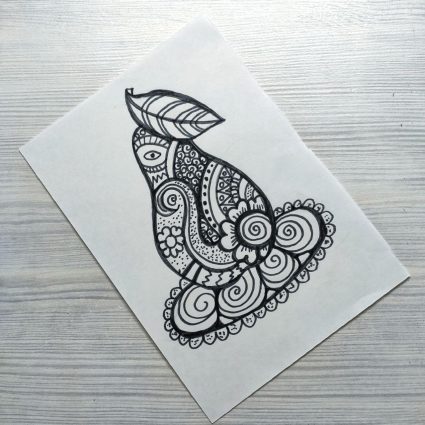 А теперь ручкой или более тонким линером зарисуйте оставшееся пространство завитками, спиральками, орнаментом….