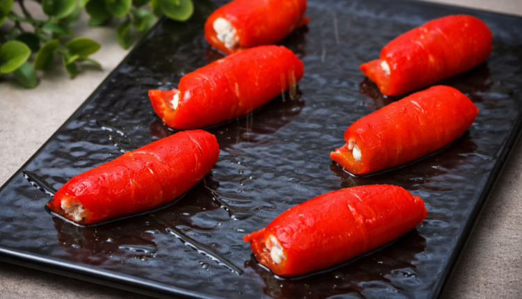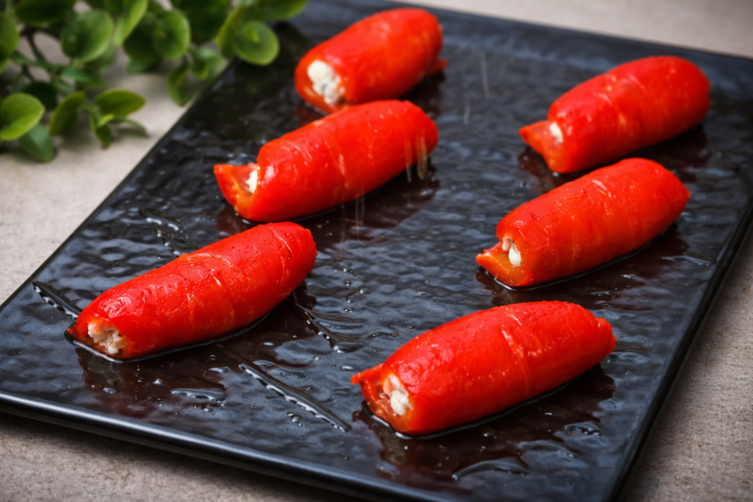 Рулетики из запеченного перца — это холодная овощная закуска, которую готовят из запечённого болгарского перца с начинкой из брынзы и зелени. После запекания перец становится мягким и легко сворачивается в рулеты.