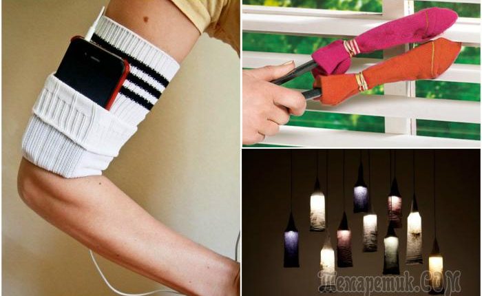 Резинку ненужного носка можно использовать для создания удобной спортивной повязки, которая позволит плотно зафиксировать мобильный телефон или плеер и не потерять его во время пробежки.